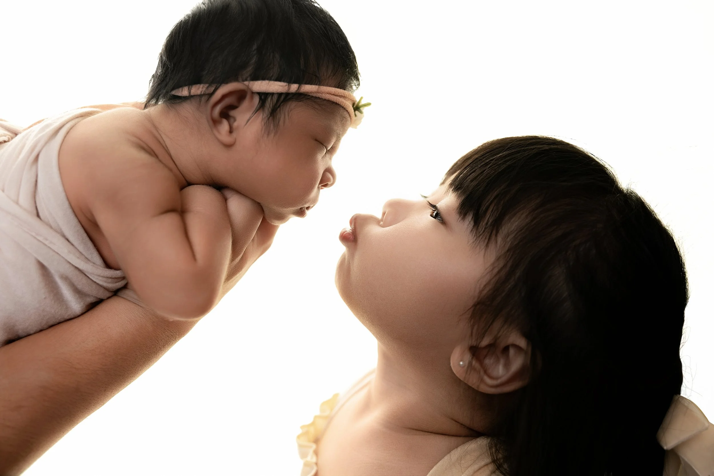 Big sister kissing baby sister